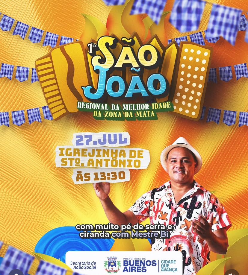 Com muito forró pé de serra e uma ciranda animada com Mestre Bi, o evento promete movimentar a melhor idade com muito arrasta-pé, cores, sorrisos e memórias afetivas do ciclo junino.