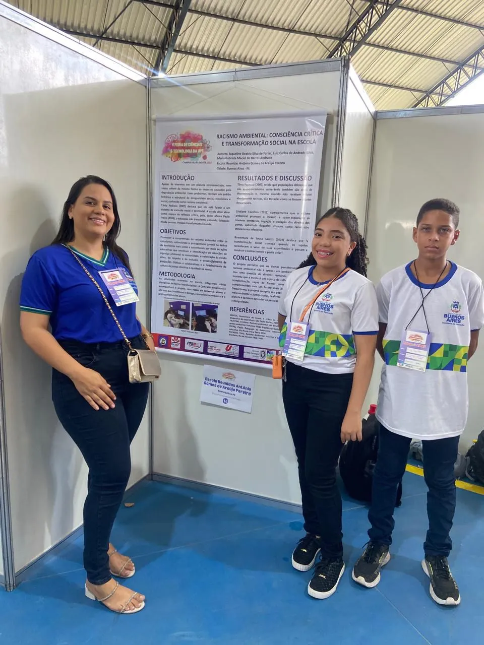 Os estudantes Jaqueline Beatriz e Luiz Carlos, do 7º ano das Escolas Reunidas, representaram o município de Buenos Aires na V Feira de Ciências e Tecnologia da Universidade de Pernambuco (UPE), realizada em Nazaré da Mata. O trabalho apresentado, intitulado “Racismo Ambiental: consciência crítica e transformação social na escola”, foi desenvolvido sob orientação da professora Gabriela Maciel.