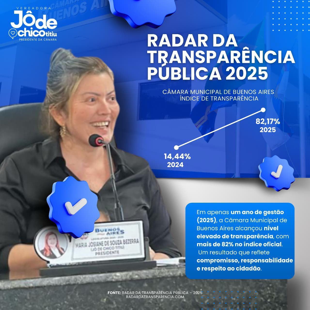 O índice alcançado posiciona a Câmara de Buenos Aires em um patamar elevado de transparência, reforçando o compromisso do Legislativo municipal com a ética, a responsabilidade e o respeito ao cidadão.