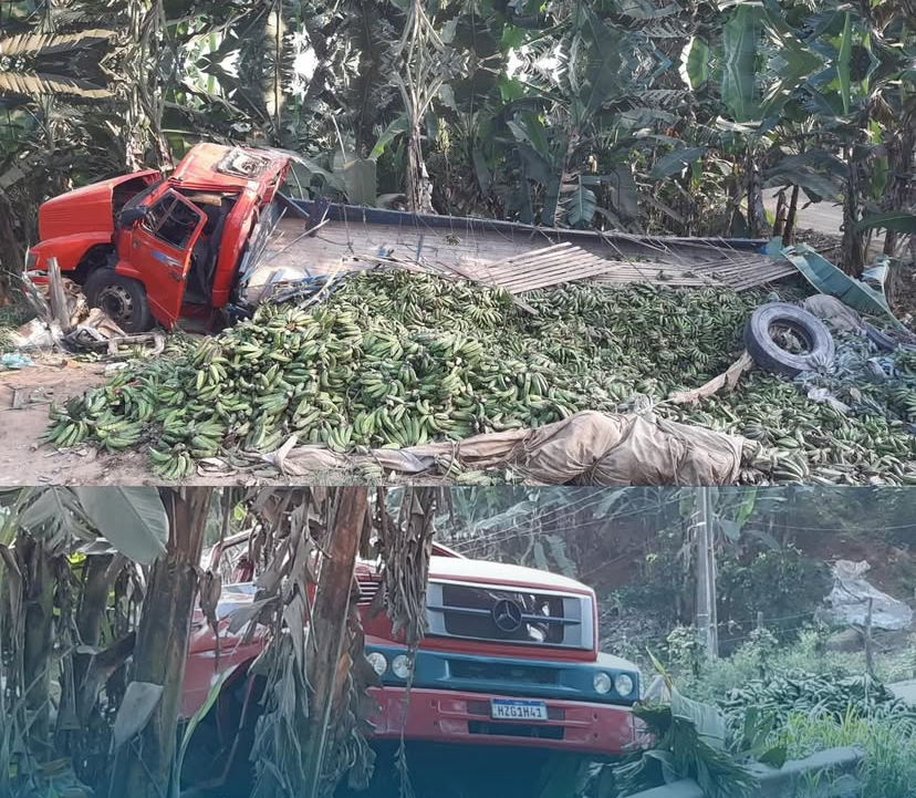 Na tarde desta sexta-feira (12), um caminhão basculante da Mercedes, carregado de bananas, tombou às margens da PE-089, nas proximidades do Sítio Califórnia, zona rural de Machados, no Agreste de Pernambuco.