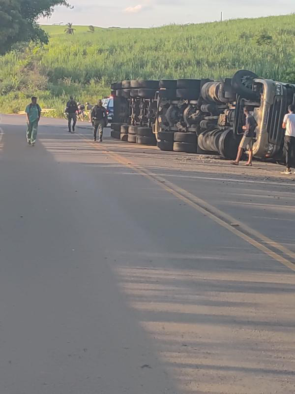 O acidente ocorreu na conhecida ladeira da Usina Aliança, trecho que liga a cidade de Aliança ao município de Goiana. De acordo com informações iniciais, o caminhão acabou tombando na pista, chamando a atenção de motoristas que passavam pelo local.