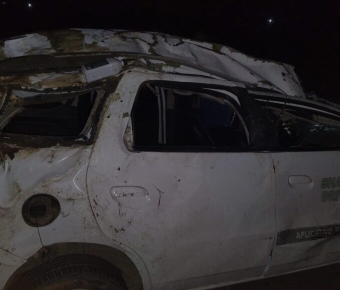 De acordo com informações preliminares, o motorista perdeu o controle do veículo, um carro de cor branca, e acabou capotando às margens da pista.