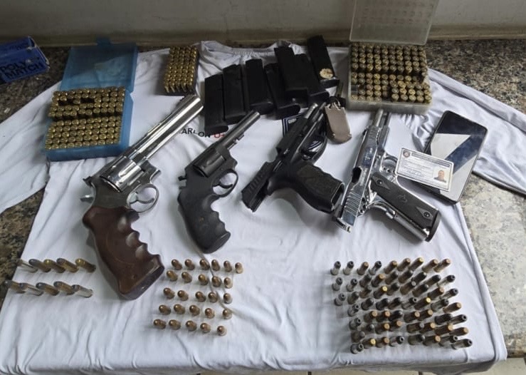 De acordo com o Batalhão de Policiamento Rodoviário (BPRv), o motorista realizou uma manobra brusca, o que chamou a atenção da equipe policial. Na abordagem, os militares encontraram em uma sacola dois revólveres calibre .38, uma pistola calibre .45, uma pistola calibre 9mm, além de 6 munições calibre .45, 93 munições calibre .38, 26 munições calibre .357 e 26 munições calibre 9mm.
