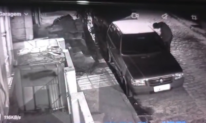 O crime ocorreu em frente a uma residência localizada por trás do Armazém de Zé Dornelas. Nas imagens, é possível ver o autor agindo rapidamente antes de fugir com o veículo.