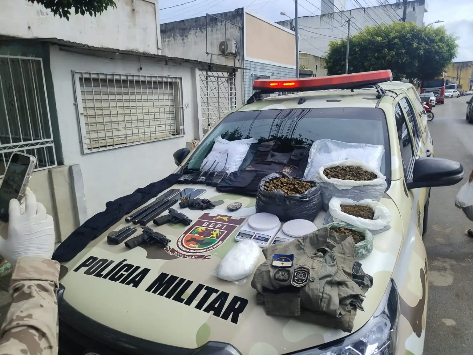 A ação foi realizada pelo Batalhão Especializado de Policiamento do Interior (BEPI), com o apoio do serviço reservado do 22º Batalhão da Polícia Militar e de agentes da 116ª Delegacia de Polícia Civil. Durante a operação, foram apreendidas armas de fogo, drogas e um veículo.
