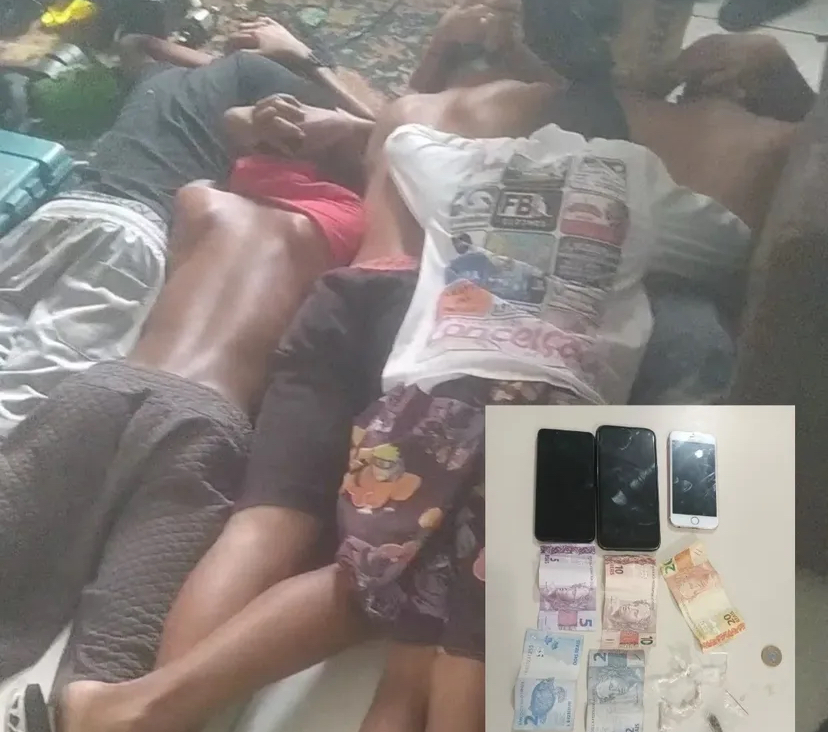 De acordo com a PM, a ação foi realizada a partir de informações repassadas ao efetivo. No local, os policiais identificaram cinco indivíduos atuando de forma organizada. Dois menores foram abordados na parte externa do imóvel, sendo apontados como responsáveis por vigiar a movimentação. Em seguida, outros três suspeitos foram encontrados dentro de uma residência, no final de um beco.