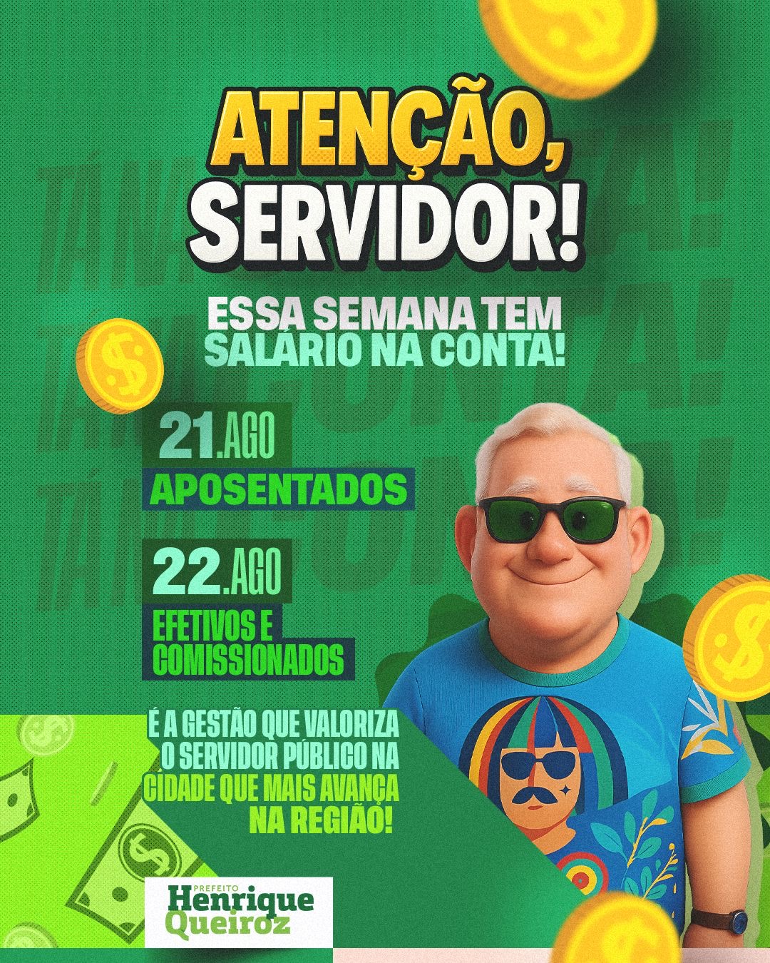 O prefeito Henrique Queiroz destacou que a gestão segue mantendo os salários em dia como forma de valorização do funcionalismo público e de incentivo à economia local.