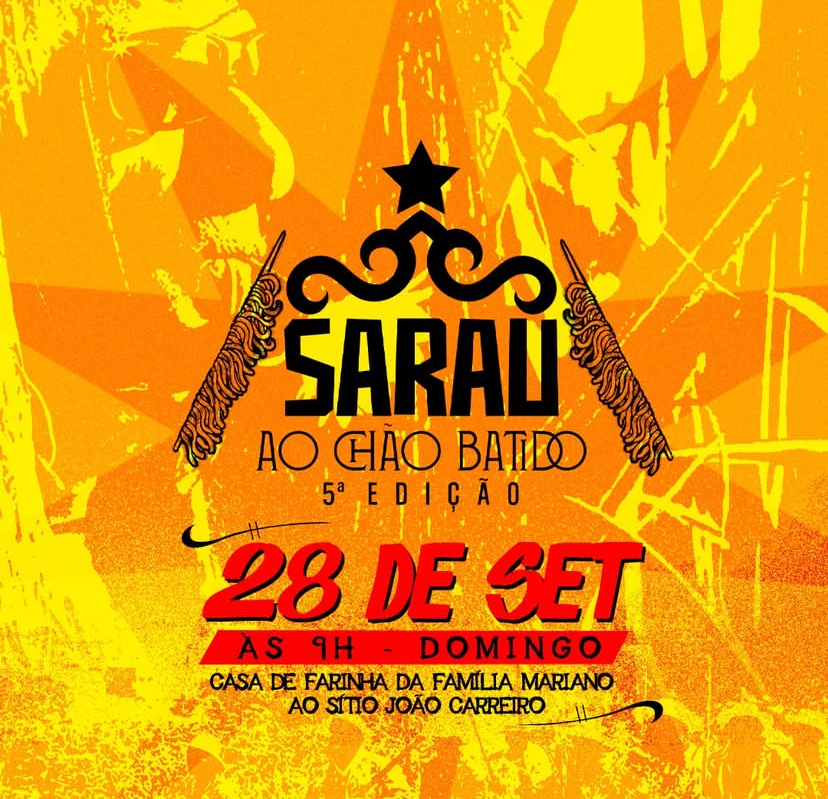 No próximo dia 28 de setembro, a partir das 9h da manhã, acontece a 5ª edição do Sarau ao Chão Batido, um encontro cultural marcado pela força da tradição, da memória e da partilha. O evento será realizado na Casa de Farinha da Família Mariano, no Sítio João Carreiro, e promete reunir poesia, música e o ritmo contagiante do Maracatu Rural.