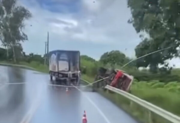 Um caminhão baú, de placa não informada, tombou há poucos minutos na rodovia PE-062, no trecho que liga os municípios de Aliança e...