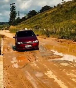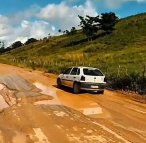 “Tem 5 km que tá muito ruim”, disse ao justificar os danos como resultado de chuvas e tráfego de veículos pesados em áreas não recomendadas.