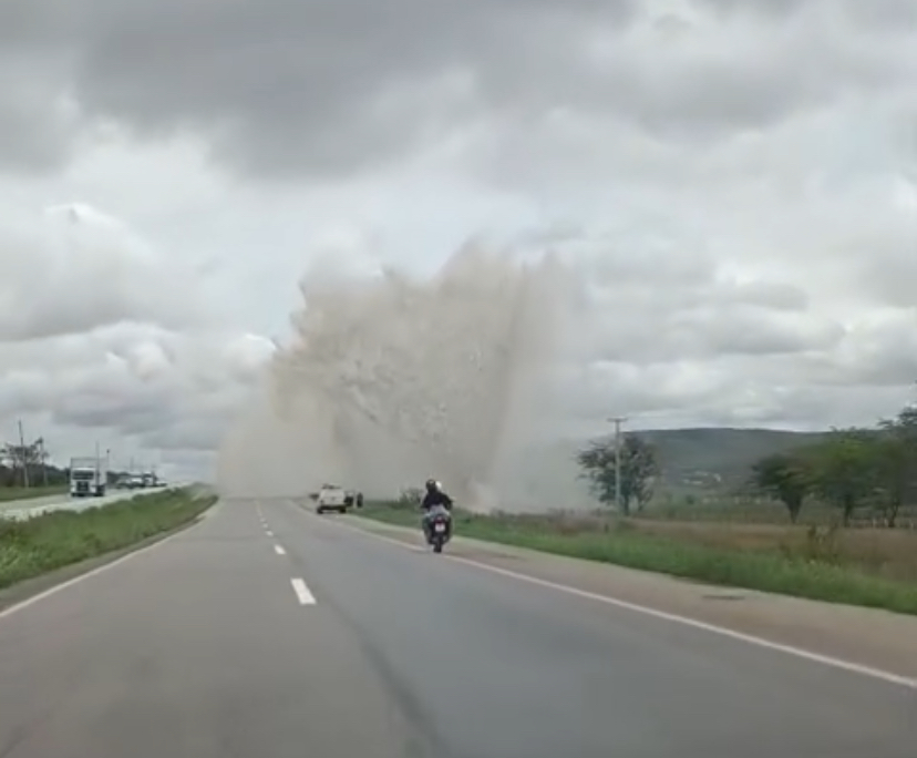 De acordo com informações, o rompimento aconteceu no sentido Recife e, por conta da forte pressão, um jato d’água chegou a atingir aproximadamente 20 metros de altura, chamando a atenção de quem passava pelo local.
