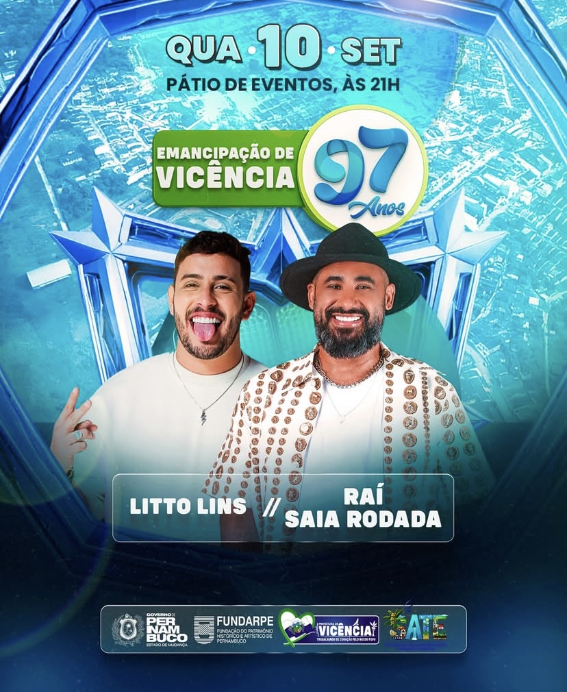 A cidade de Vicência, na Zona da Mata Norte de Pernambuco, se prepara para celebrar seus 97 anos de emancipação política em grande estilo. A festa será realizada no dia 10 de setembro, a partir das 21h, no Pátio de Eventos.