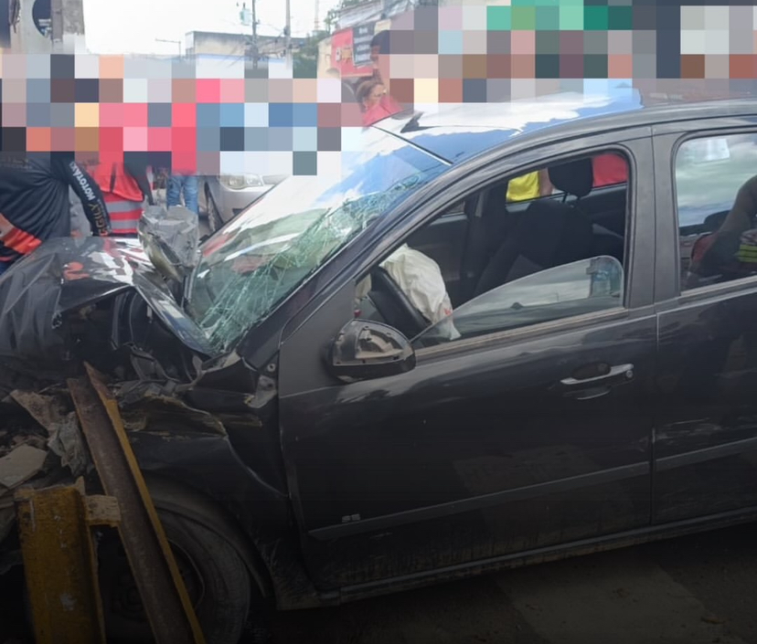 Imagens de câmeras de segurança registraram o momento do acidente. No vídeo, é possível observar que uma mulher vestindo roupa rosa por pouco não foi atingida pelo veículo desgovernado.